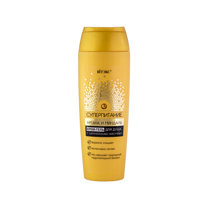 Крем-гель-душ благодаря своей мягкой формуле бережно очищает кожу, исключая ее пересушивание во время мытья. Питательные вещества и протеины в натуральных маслах арганы и сладкого миндаля восстанавливают гидролипидный слой кожи, смягчают, обеспечивают упругость и эластичность кожи, стимулируют регенерацию клеток.