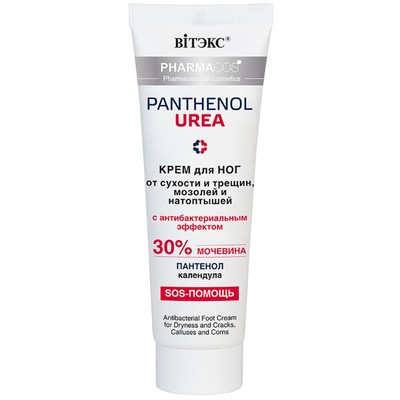 Крем с высокой концентрацией компонентов особенно рекомендуется для интенсивного восстанавливающего ухода за кожей ног, склонной к сухости и ороговению. Активная формула содержит 30% мочевины (Urea), которая превосходно увлажняет и смягчает кожу, препятствует пересушиванию, предотвращает образование избыточного ороговения, защищает кожу от появления трещин, мозолей и натоптышей. Пантенол (Panthenol) активно восстанавливает кожу, моментально устраняет сухость, стянутость и шелушение, ускоряет заживление трещин. Календула лекарственная (Calendula officinalis) оказывает бактерицидное и дезинфицирующее действие, препятствуя воспалению трещин.