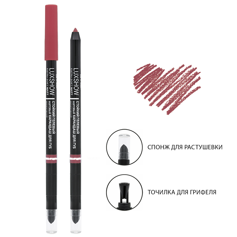 Встроенная точилка поможет сделать грифель настолько острым, как вам необходимо, а спонж для тушевки позволит легко и равномерно растушевать карандаш по всей поверхности губ.