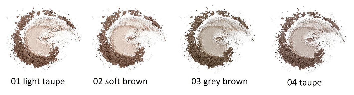 Пудра легко наносится и растушевывается, помогая мягко прорисовать контур и скорректировать форму бровей, не создавая четких границ.