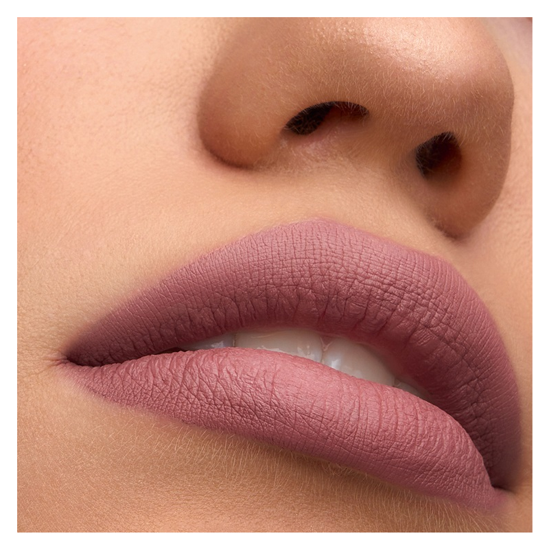 Жидкая флюидная текстура помады быстро высыхает после нанесения и создает невесомое покрытие с ультра матовым финишем.