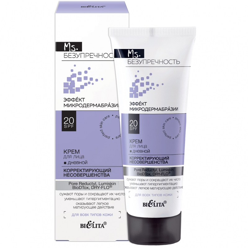 Дневной крем для лица «Корректирующий несовершенства» SPF 20 – идеальное решение для обладательниц кожи лица с расширенными порами, веснушками и пигментными пятнами, склонной к воспалениям, излишнему блеску и неровному тону.