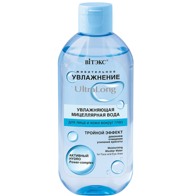 Увлажняющая мицеллярная вода с системой long-effect действует одновременно в трех направлениях, обеспечивая коже мгновенное ощущение комфорта, свежести и чистоты. Формула с активным мицеллами полностью растворяет макияж и загрязнения, легко и аккуратно очищая кожу без лишнего трения. Состав обогащен специально разработанным увлажняющим комплексом HYDRO Power-complex, который насыщает кожу влагой, тонизирует, делает цвет лица ярким, ровным и сияющим.
