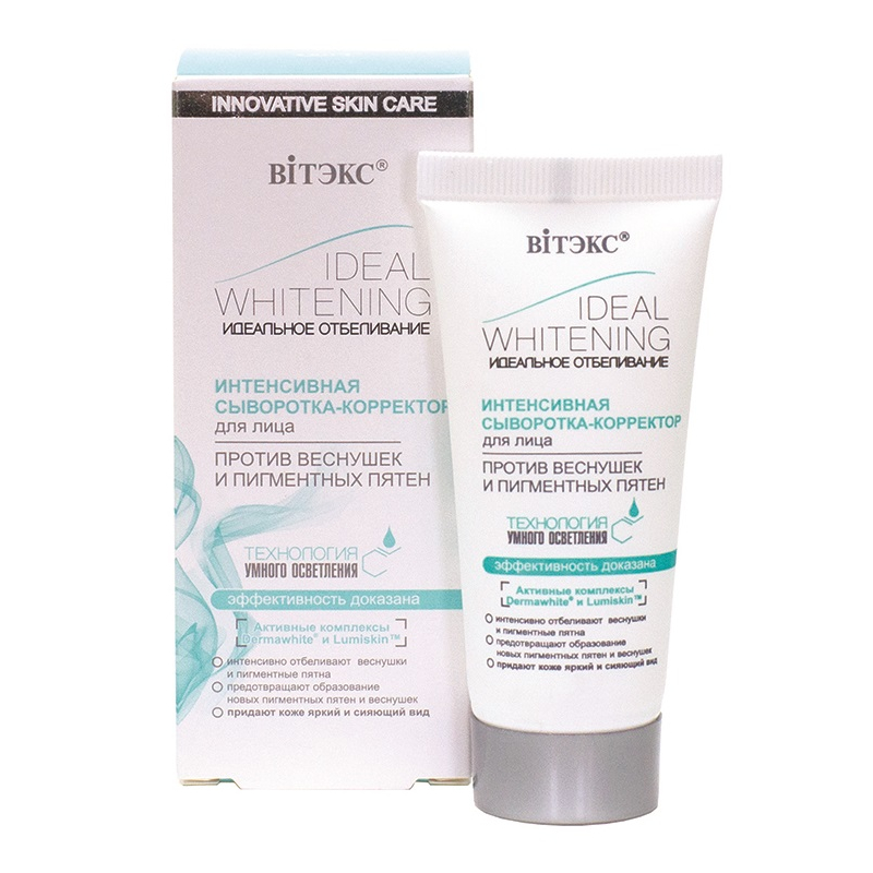 Благодаря уникальной технологии «умного» осветления активные комплексы Dermawhite и Lumiskin сыворотки-корректора помогают снизить синтез меланина и минимизировать появление пигментных пятен.