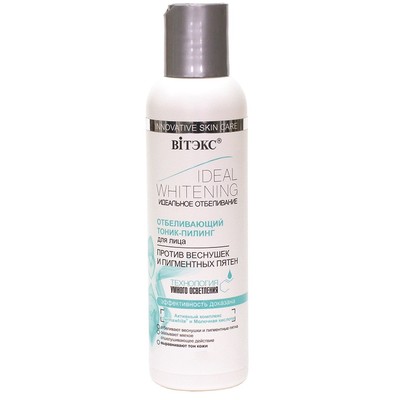 Отбеливающий тоник-пилинг выравнивает цвет кожи и минимизирует появление пигментных пятен.
