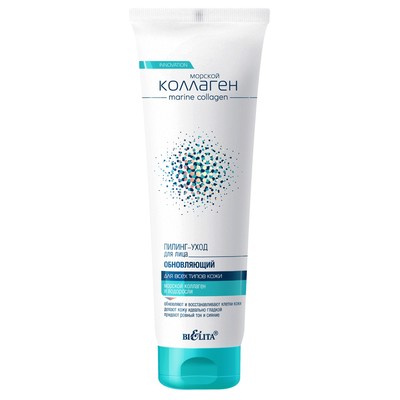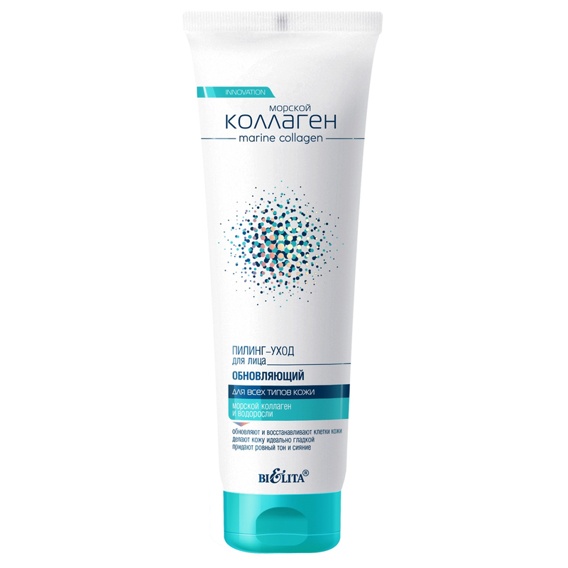 Активные компоненты: морской коллаген, бурые водоросли, микрочастицы оксида кремния, целлюлоза, аллантоин и бетаин.